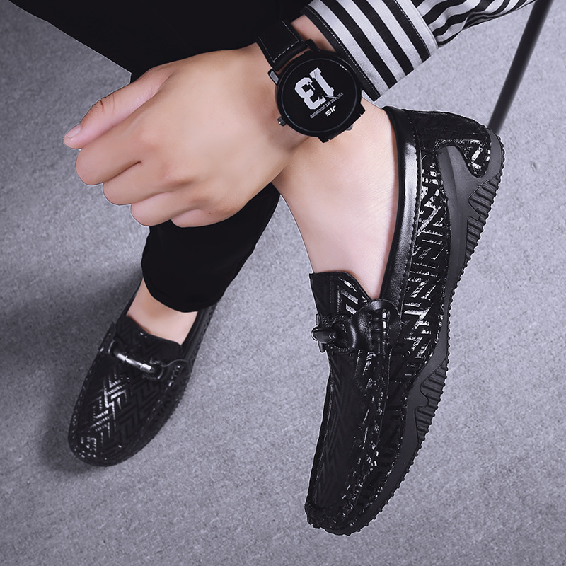 Peas Shoes Men’s Pattern Leather Soft Sole Leather Shoes